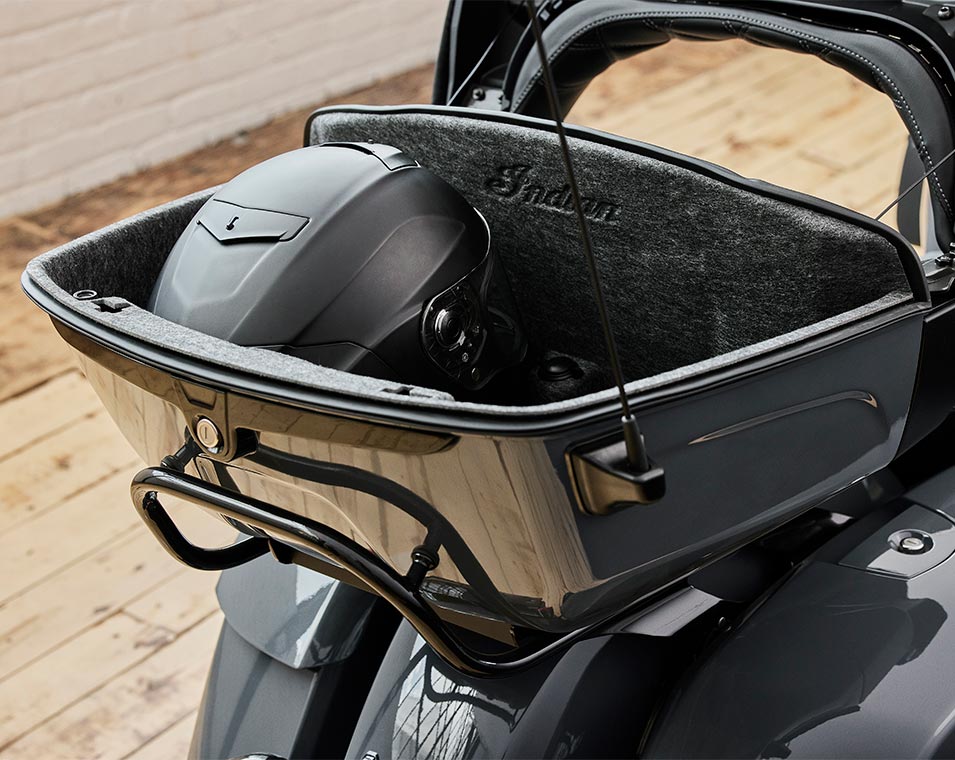 | Equipements Standard | Technologie Smart Lean ; précharge de la suspension arrière à réglage électronique ; siège chauffant ; feux de conduite intégrés dans le carénage inférieur ; rangement dans le carénage inférieur ; écran tactile de 7 po alimenté par Ride Command avec intégration d'Apple CarPlay ; modes de conduite sélectionnables ; désactivation du cylindre arrière ; régulateur de vitesse ; surveillance de la pression des pneus ; Sacoches rigides et coffre verrouillables à distance ; espace de rangement de plus de 137L ; highway bars; marchepieds passagers réglables ; freins Brembo ; ABS ; démarrage sans clé ; carénage monté sur le châssis ; pare-brise électrique ; bouches d'aération du carénage réglables ; poignées chauffantes ; système audio de 200 watts avec AM/FM, Bluetooth, USB, entrée compatible smartphones ; port de chargement de 12 V. |